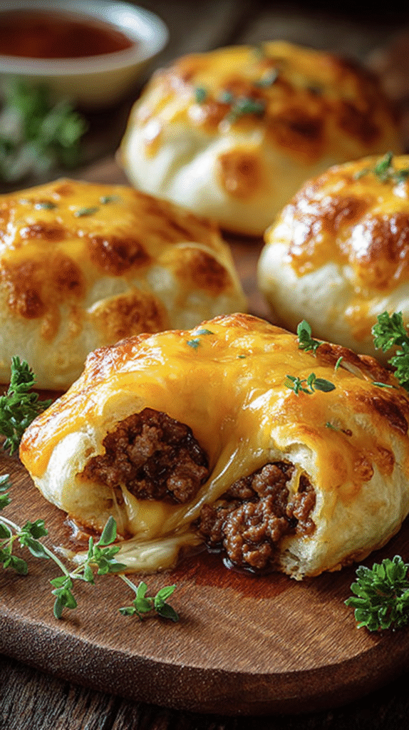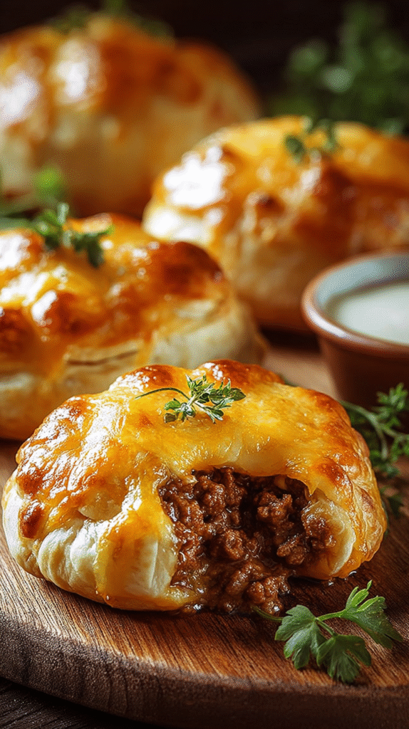 Deliciously flaky crescent rolls filled with savory ground beef and oozing cheese.