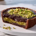 An indulgent Chocolate Pistachio Tart featuring a buttery crust filled with rich dark chocolate and crunchy pistachios, perfect for any celebration.