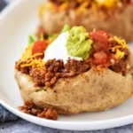 Assemble the Taco Potatoes: When the potatoes are cooked, remove them from the oven and cut them lengthwise to create a pocket. Gently fluff the insides with a fork to make room for the filling.