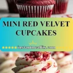 Delicious mini red velvet cupcakes with a rich cocoa flavor and cream cheese frosting, perfect for any gathering.