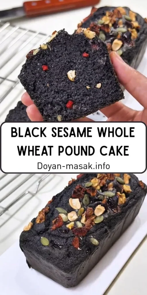 A unique twist on a classic pound cake featuring the nutty flavor of black sesame and the wholesome goodness of whole wheat flour.