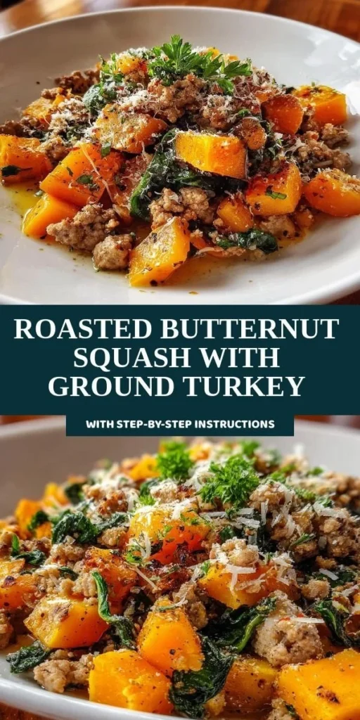 A warm and hearty dish featuring roasted butternut squash paired with savory ground turkey, perfect for autumn evenings.
