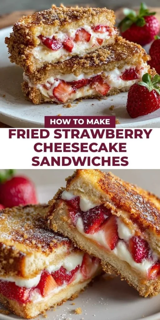 Fried Strawberry Cheesecake Sandwiches are a delightful fusion of textures and flavors. Imagine biting into a crunchy exterior that gives way to a rich, creamy center filled with sweet strawberries and silky cheesecake. The buttery bread adds a nostalgic touch, reminiscent of childhood sandwiches, yet elevated to a new level of deliciousness. The sweetness of the strawberries perfectly balances the tangy cream cheese, while a pinch of cinnamon or a dash of vanilla extract can elevate the whole experience into something truly heavenly.