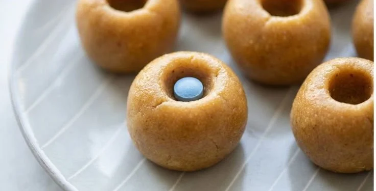 Shape the pockets: Taking about a tablespoon of the mixture, mold it around the pills or tablets. Ensure they’re well-enclosed to keep the medicine hidden inside.