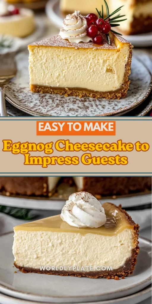 A rich and creamy Eggnog Cheesecake filled with festive flavors, perfect for holiday gatherings.