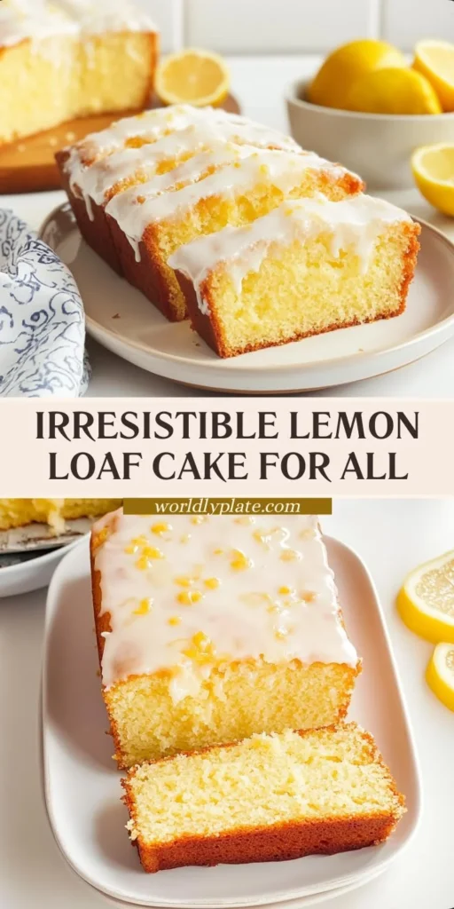 This cake isn’t just for special occasions; it’s perfect for everyday enjoyment. Whether served during an afternoon tea or as a simple dessert after a family dinner, Lemon Loaf Cake never fails to impress. The vibrant flavors evoke memories of sunny days and joyous moments, allowing it to resonate with a wide audience. It’s a dessert that invites laughter and conversation, making it a beloved choice in many households.