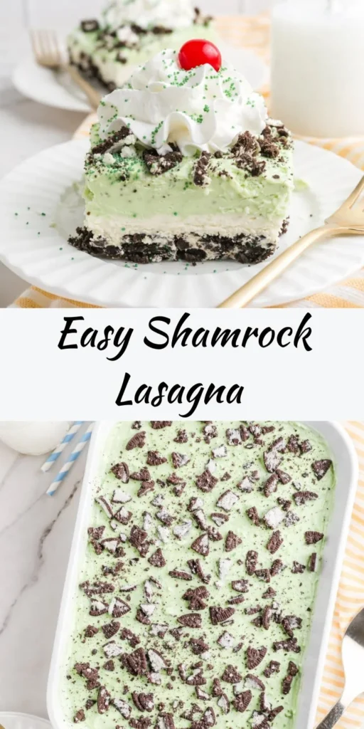 Serve the Shamrock Lasagna Creamy Mint Dessert Recipe in individual slices or family-style in the dish for an inviting presentation. Pair it with a cup of freshly brewed mint tea for a delightful experience. If you’re looking for cocktails, a light mojito or a mint-infused lemonade offers a refreshing complement to this creamy dessert.