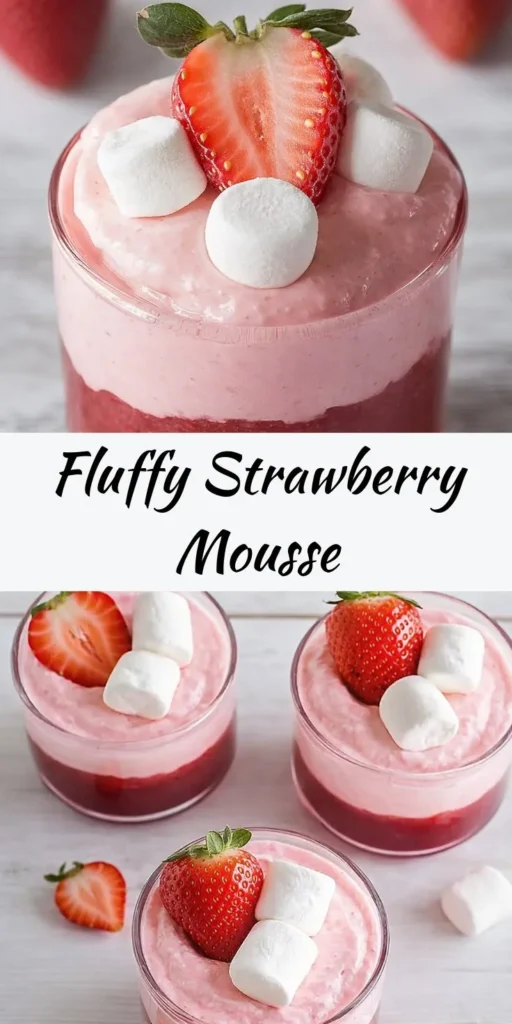Presentation is everything, especially when it comes to a dessert like this. Serve the Fluffy Strawberry Mousse in elegant glass cups or bowls to showcase its delightful textures. Consider pairing it with:
