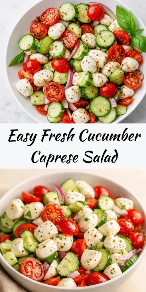 This Fresh Cucumber Caprese Salad was always a hit at family gatherings, served at picnics, and shared on lazy backyard afternoons. Its simplicity and fresh ingredients make it a versatile choice, appealing to both picky eaters and adventurous palates alike. I’ve seen the smiles it brings to the faces gathered around the table, each person enjoying their own unique spin on this classic dish. With just a handful of ingredients, anyone can whip it up flawlessly, making it the perfect recipe for both new cooks and seasoned pros.