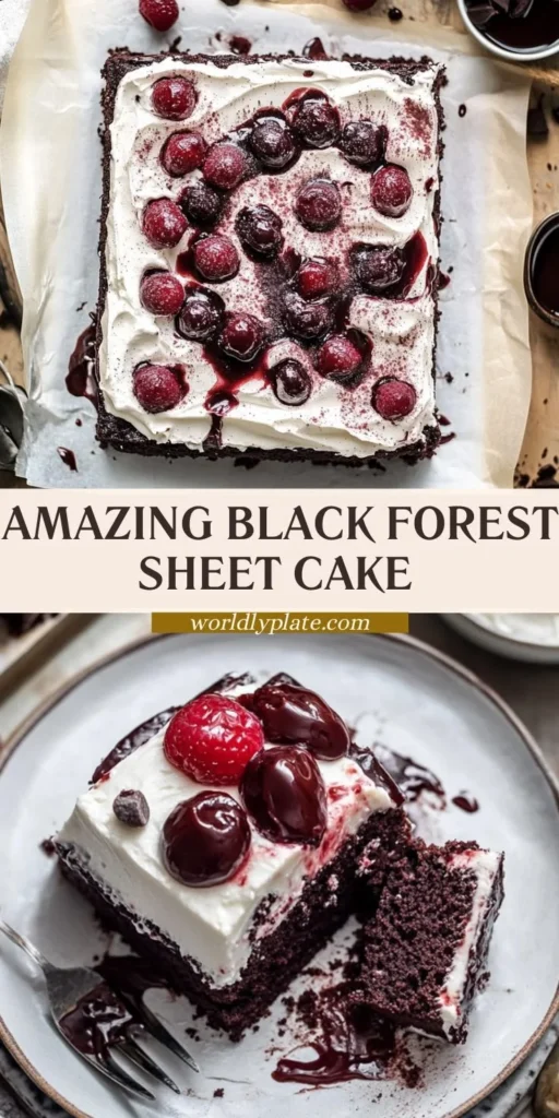 As I grew older, I learned that making a Black Forest Sheet Cake wasn’t just about gathering ingredients; it was about crafting moments to share with those I loved. In my own home, it became a tradition—birthdays, holidays, or just a sunny afternoon—this cake found its way onto our table, delighting friends and family alike. Every bite retains that nostalgia, weaving together the threads of time spent and cherished. So today, I invite you to join me in baking this beloved cake, adding your chapter to the story that’s been unfolding since my grandmother’s time.