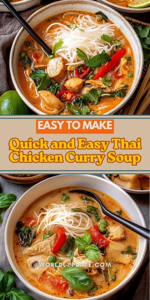 A soulful Thai Chicken Curry Soup that combines tender chicken, coconut milk, and aromatic herbs for a comforting meal perfect for gatherings.